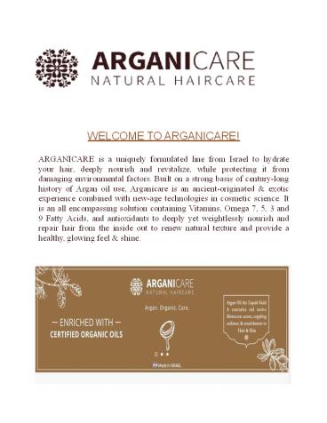 1WELCOME TO ARGANICARE! ARGANICARE is a uniquely