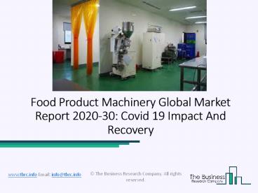 coronavirus. - The report covers the Food Product Machinery
