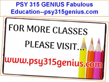 Title: PSY 315 GENIUS Fabulous Education--psy315genius.com