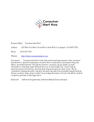 Business Name Consumer Alert Now Address 229