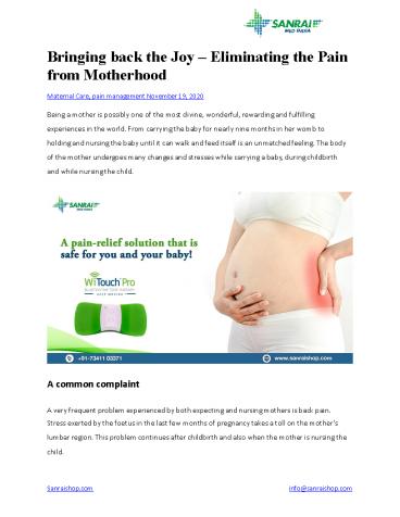 Title: Bringing back the Joy – Eliminating the Pain from Motherhood