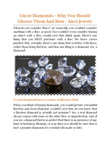 Title: Uncut Diamonds – Why You Should Choose Them And How - Aura Jewels