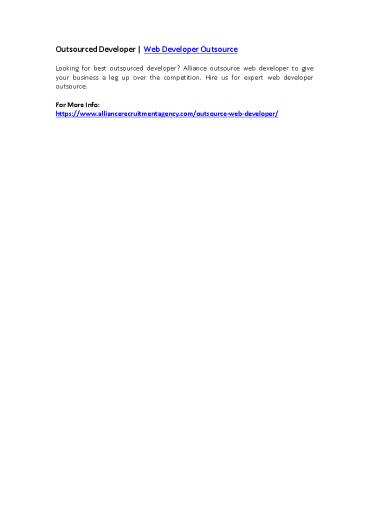 Outsourced Developer | Web Developer Outsource PowerPoint PPT Presentation