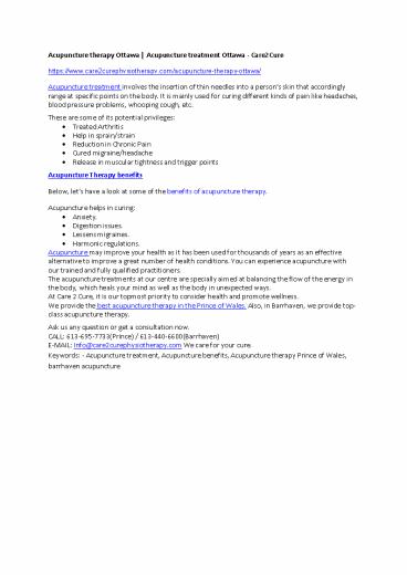 Acupuncture therapy Ottawa | Acupuncture treatment Ottawa – Care2Cure PowerPoint PPT Presentation