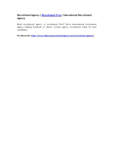Recruitment Agency | Recruitment Firm | International Recruitment Agency PowerPoint PPT Presentation