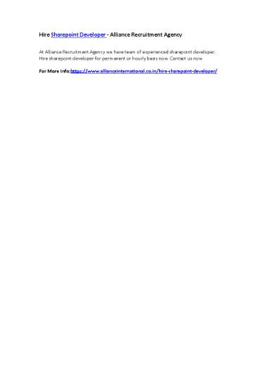 Hire Sharepoint Developer - Alliance Recruitment Agency PowerPoint PPT Presentation