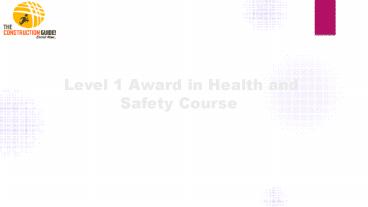 Level 1 Award in Health and Safety Course PowerPoint PPT Presentation