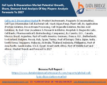 Title: Cell Lysis & Dissociation Market Potential Growth, Share, Demand And Analysis Of Key Players- Analysis Forecasts To 2027