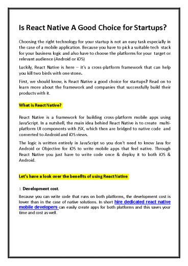 Title: Is React Native A Good Choice for Startups?