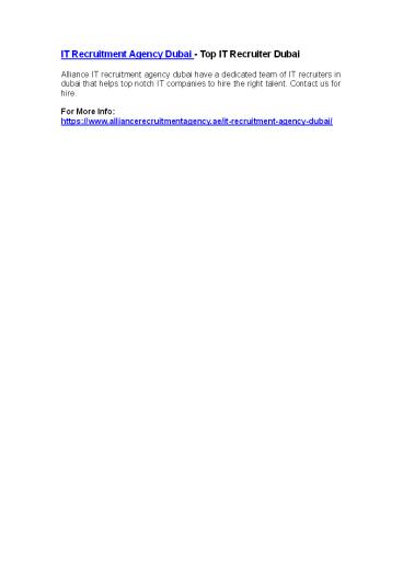 IT Recruitment Agency Dubai - Top IT Recruiter Dubai PowerPoint PPT Presentation