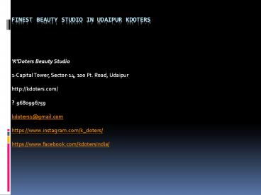 Finest Beauty Studio in Udaipur KDoters PowerPoint PPT Presentation