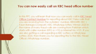 Now you can call easly on KBC number - PowerPoint PPT Presentation