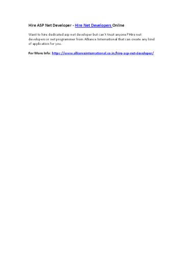 Hire ASP Net Developer - Hire Net Programmers Online PowerPoint PPT Presentation
