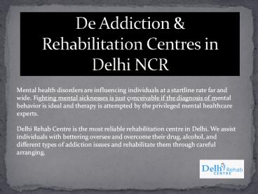 de-addiction and mental rehab in Delhi, India. We