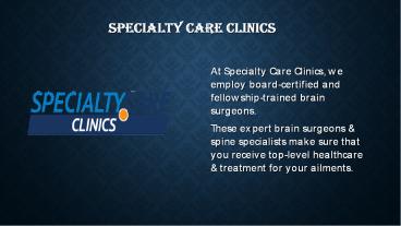 • Specialty Care Clinics, Neurologists and Brain