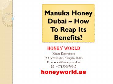 Sharjah, UAE. E contact_at_honeyworld.ae M