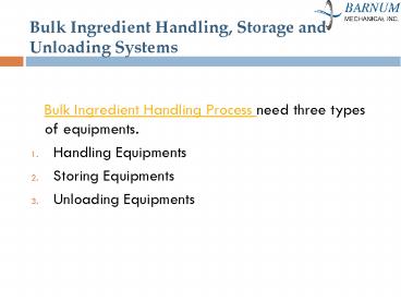 Bulk Ingredients Handling Systems | Process Systems - Barnummech USA PowerPoint PPT Presentation