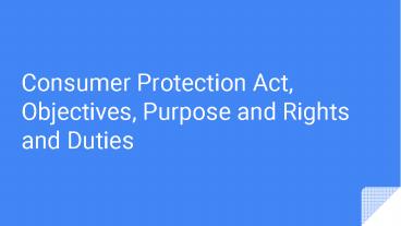 Know about Consumer Protection Act PowerPoint PPT Presentation