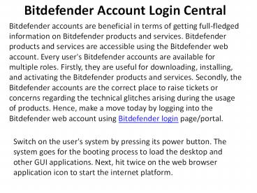 Title: Bitdefender Account Login Central