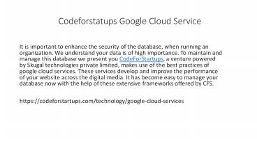 Codeforstatups Google Cloud Service PowerPoint PPT Presentation