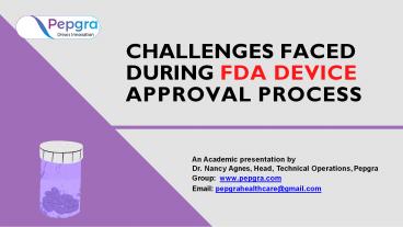 Title: Challenges faced during FDA Device Approval Process - Pepgra