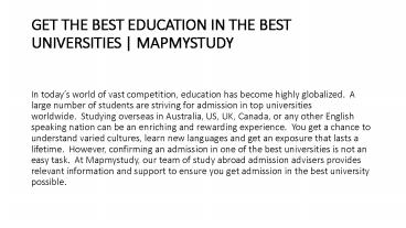 Title: GET THE BEST EDUCATION IN THE BEST UNIVERSITIES | MAPMYSTUDY