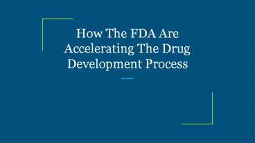 How The FDA Are Accelerating The Drug Development Process PowerPoint PPT Presentation