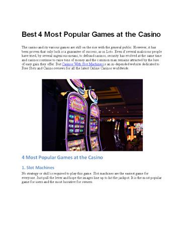 Title: Best 4 Most Popular Games at the Casino