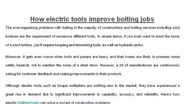 electric bolting tools can solve a myriad of