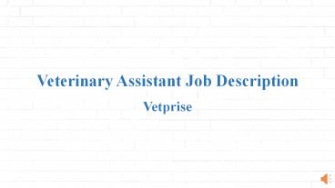 Veterinary Assistant Job Description PowerPoint PPT Presentation