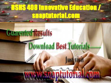Title: BSHS 408 Innovative Education / snaptutorial.com