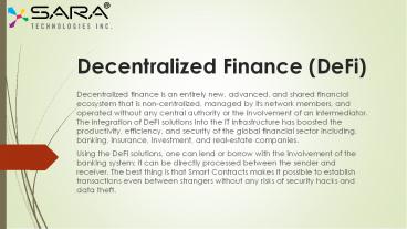 - Decentralized finance is an entirely new,