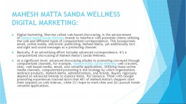 DIGITAL MARKETER: MAHESH MATTA SANDA WELLNESS PowerPoint PPT Presentation