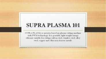 SUPRA PLASMA 101 PowerPoint PPT Presentation