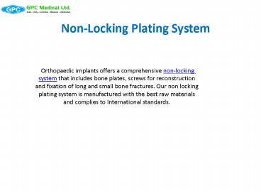 Non-Locking Plating System PowerPoint PPT Presentation