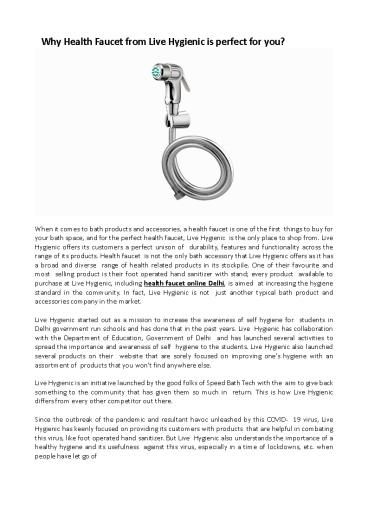Title: Best Quality Health Faucet Online Delhi - Livehygienic