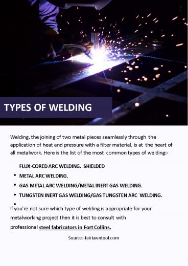 <Notice: Removed> TYPES OF WELDING PowerPoint PPT Presentation