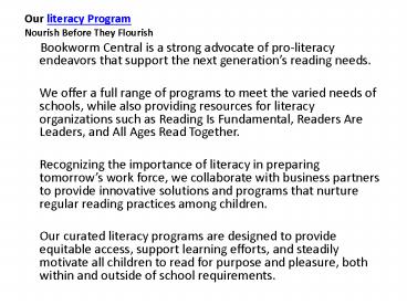 literacy Program - Literacy Program at schools PowerPoint PPT Presentation