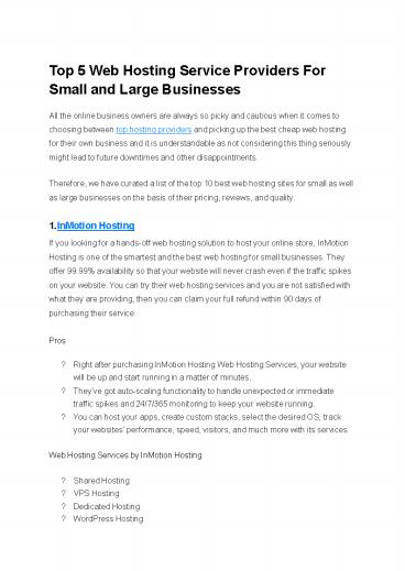 • Top 5 Web Hosting Service Providers For Small and