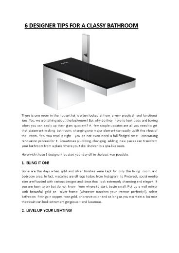 6 DESIGNER TIPS FOR A CLASSY BATHROOM