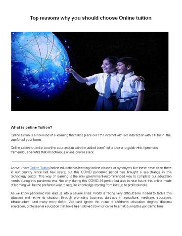 - During such a crisis period online tuition