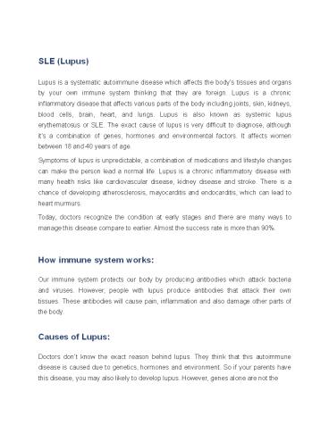 to any medicines. Conclusion Lupus is a complex