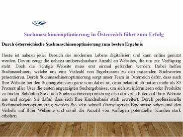 Title: Suchmaschinenoptimierung in Österreich führt zum Erfolg