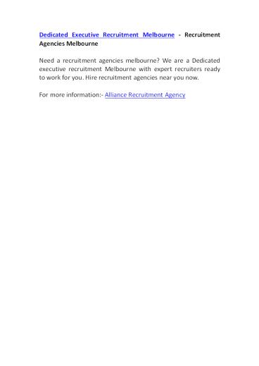 Dedicated Executive Recruitment Melbourne - Recruitment Agencies Melbourne PowerPoint PPT Presentation