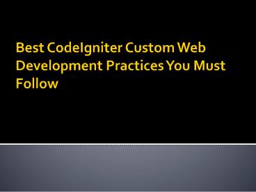 Best CodeIgniter Custom Web Development Practices You Must Follow PowerPoint PPT Presentation