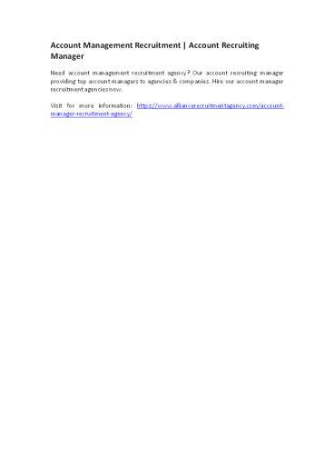 Account Management Recruitment | Account Recruiting Manager PowerPoint PPT Presentation