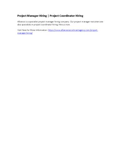 Project Manager Hiring | Project Coordinator Hiring PowerPoint PPT Presentation