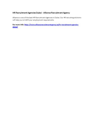 HR Recruitment Agencies Dubai - Alliance Recruitment Agency PowerPoint PPT Presentation