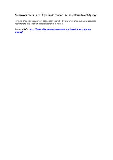 Manpower Recruitment Agencies in Sharjah - Alliance Recruitment Agency PowerPoint PPT Presentation