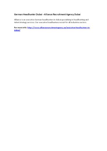 German Headhunter Dubai - Alliance Recruitment Agency Dubai PowerPoint PPT Presentation